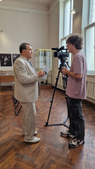 Андрій ФРАНКО по завершенні офіційної частини презентації дав інтерв’ю телебаченню "TV Галичина" і взяв участь у зйомках матеріалу для документального фільму про родину Івана Франка. Див. світлини і покликання на відео.