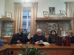 Модераторка зустрічі надала слово доньці Мирослава Мороза, Дарії Мирославівні. Саме їй, одній із трьох дітей відомого бібліографа, далекій від філології, випала доля завершити роботу, якій присвятив своє життя її батько, – «Літопис життя і творчості Івана Франка». «Після смерті батька в хаті залишилась величезна бібліотека, багато папок, паперів, різних матеріалів. Цим було заповнене однокімнатне помешкання, в якому жила наша сім’я. Користуючись цими матеріалами, я сформувала татів архів – розкривала кожну папку, ретельно все переглядала», – поділилася споминами пані Дарія Мороз.