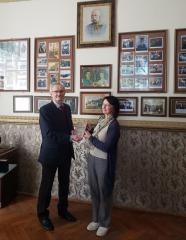 розмова з директором Музею, кандидатом історичних наук, доцентом Юрієм ПЛЕКАНОМ і науковою співробітницею Музею Мирославою КОЧЕРЖУК, а також обмін книжками,