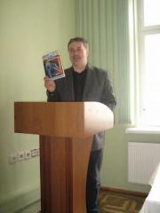 Зустріч відбувалася у форматі: виступ плюс відповіді на запитання. Про власну творчість гість