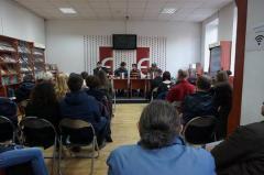 25 вересня у львівській книгарні «Є» відбулося обговорення нового роману Сергія Жадана «Інтернат» та збірки есеїв Артема Чеха «Точка нуль». Видання пов’язані між собою темою війни. У заході взяли участь літературознавці Тарас і Богдан Пастухи, Ігор Котик і Назар Данчишин.